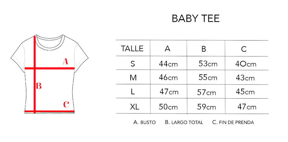 Remera tipo Baby Tee de algodón con estampa roja en serigrafia con tinta al agua.